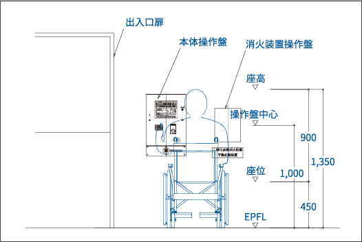 バリアフリー仕様の機械式駐車場では、駐車装置の操作盤をフロアから1000mmの高さに設置できます。これは車椅子を利用されている方が、介助を受けなくても操作盤を使用できる位置となります。