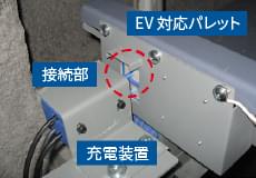 EV対応パレットを給電用棚へ格納することにより、給電ラインを介して自動的に充電されます。