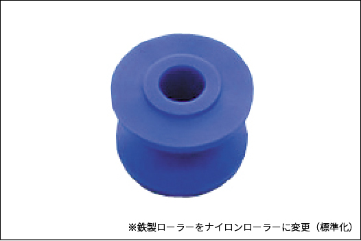 格納棚上、パレットを横スライドさせるためのローラーは、鉄製ではなく、静音性に優れた樹脂製を採用しております。