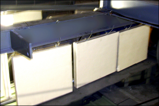 駆動部の電動機・減速機廻りに吊り下げ型吸音パネルを設置し、騒音源からの影響を低減します。