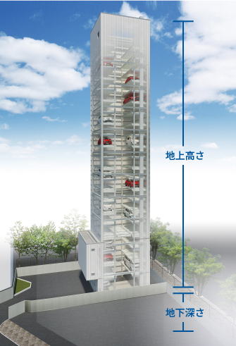 ※地上高=乗込FL~パラペット天端、地下深さ=乗込FL~ピット水下