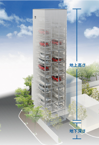 ※地上高=乗込FL~パラペット天端、地下深さ=乗込FL~ピット水下